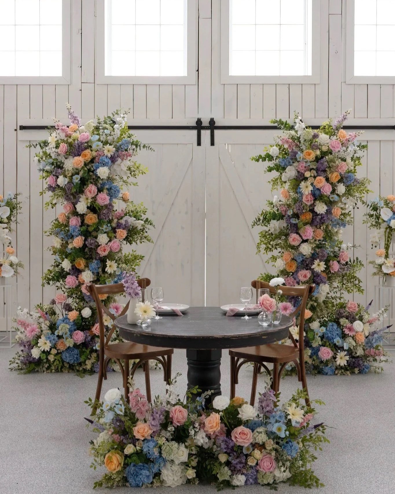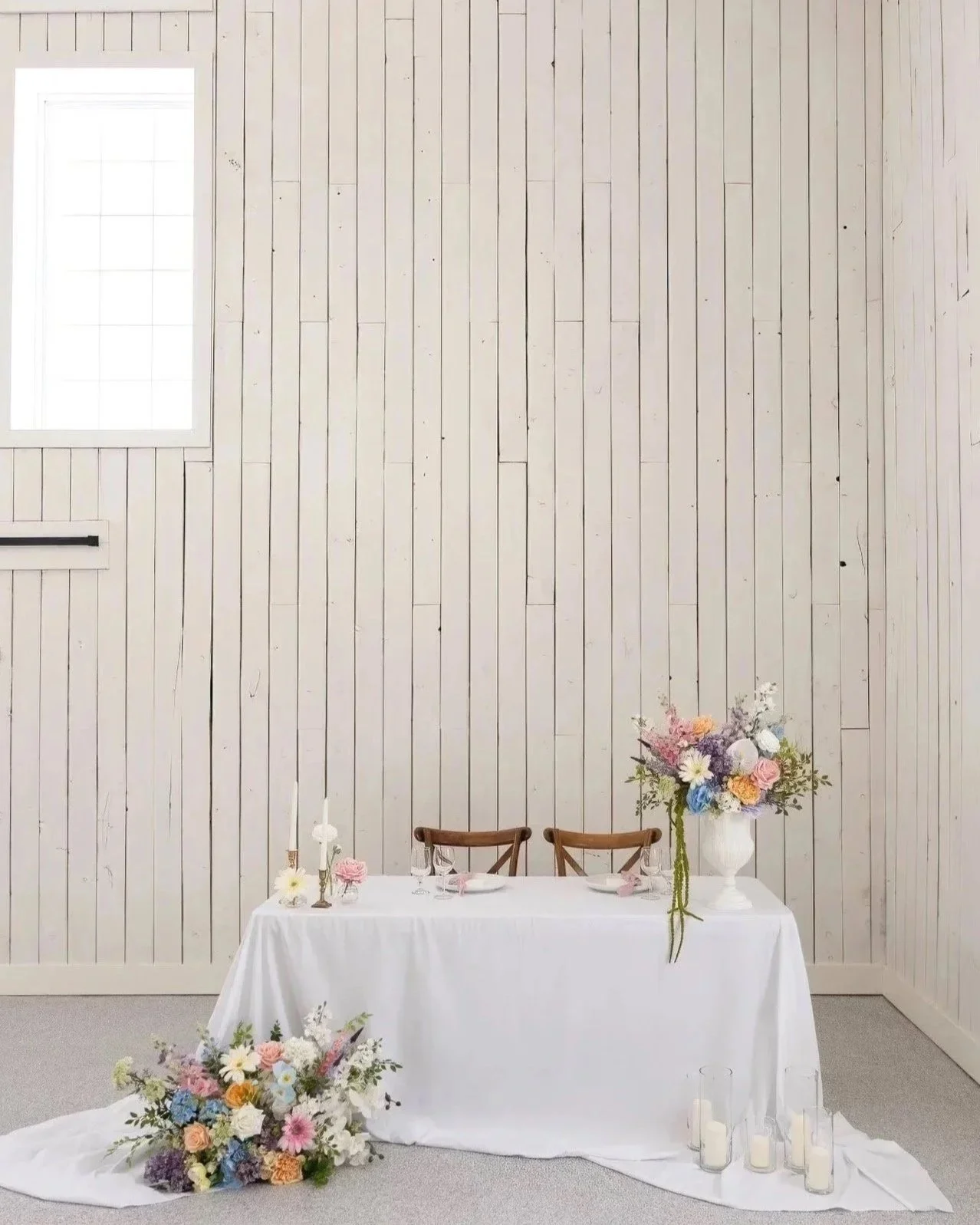 A large statement piece when you walk in the room, with two tables doubled up the thickness allows for all the decor to make it really WOW your guests and amp up your floor plan.
