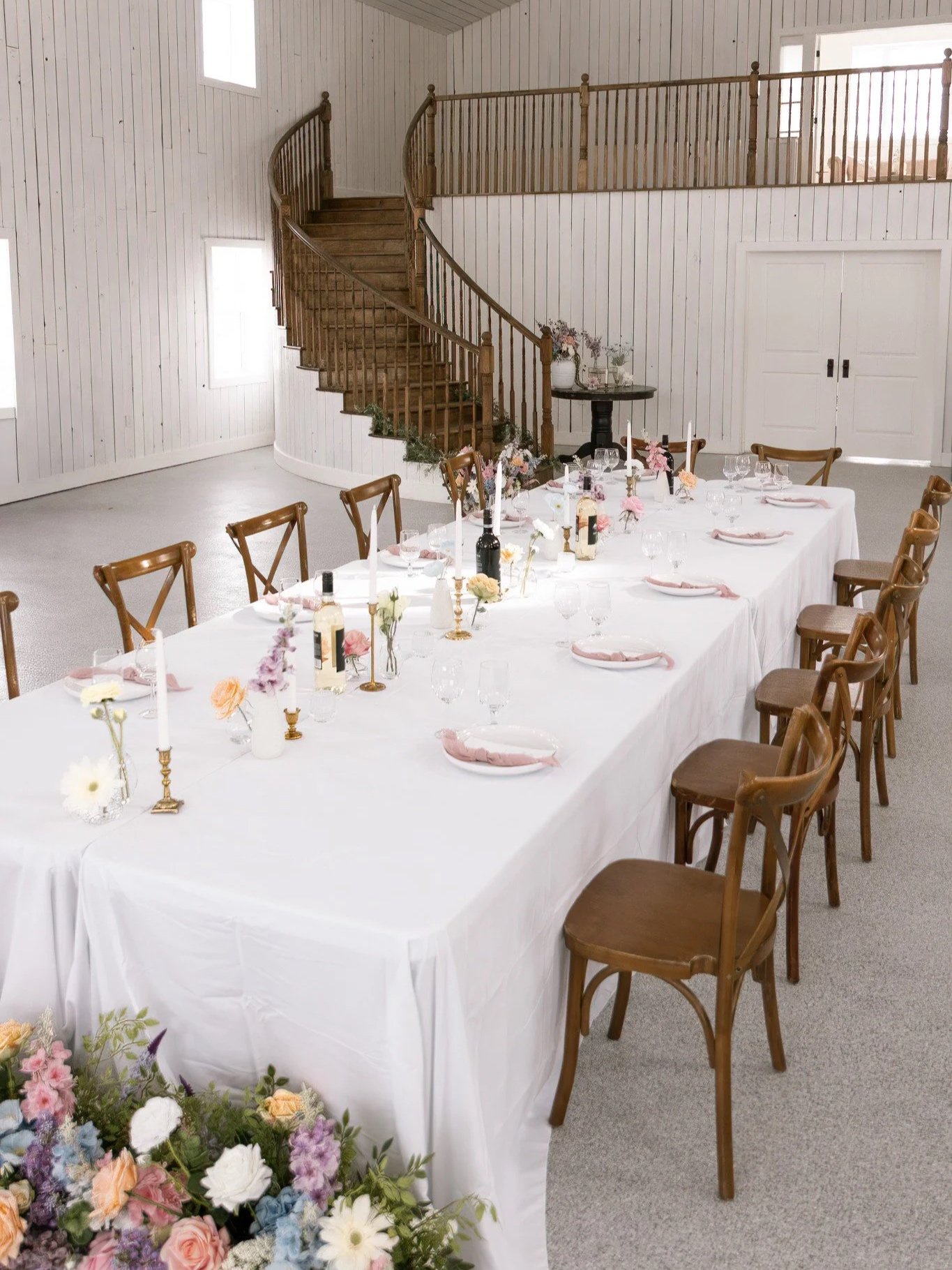 Inspo photos is 4× 8ft rectangular tables and could seat up to 20.
