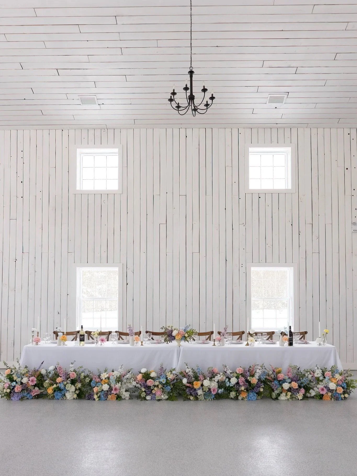 OR sit with your wedding party and your families, the options are endless with this “t” shaped head table layout.